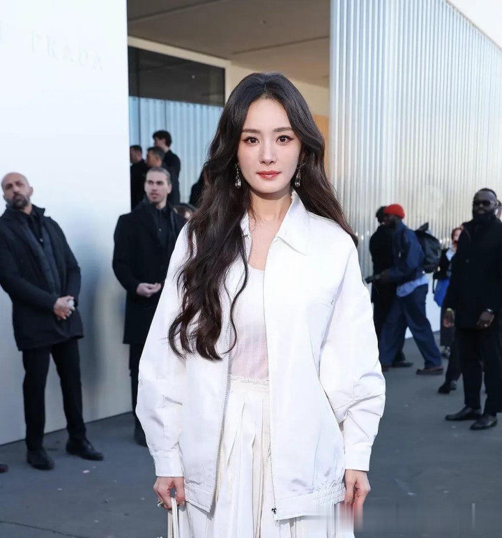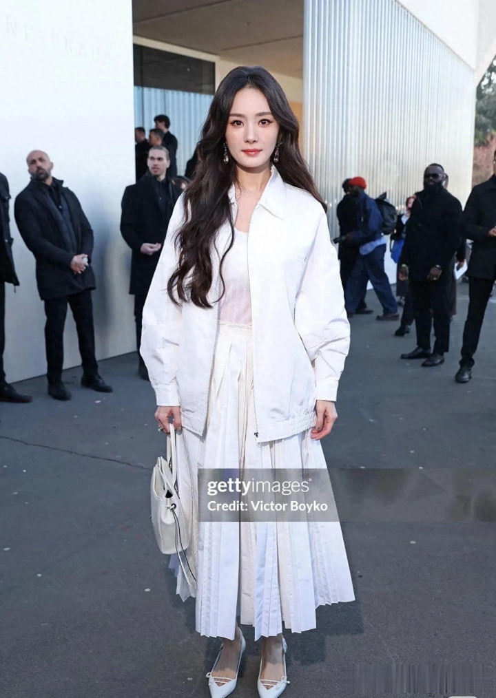杨幂一头长卷发,搭配白色外套和白色白鞋半裙,就连鞋子也是白色的,但看上去不算单调,反而很清爽大气,符合中国人的审美。