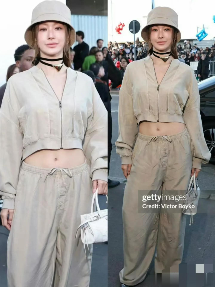 泰国女演员Namtan这套穿搭也一言难尽,衣服颜色像灰色又像米白,还戴了帽子,跟渔夫似的,完全浪费了她的颜值和