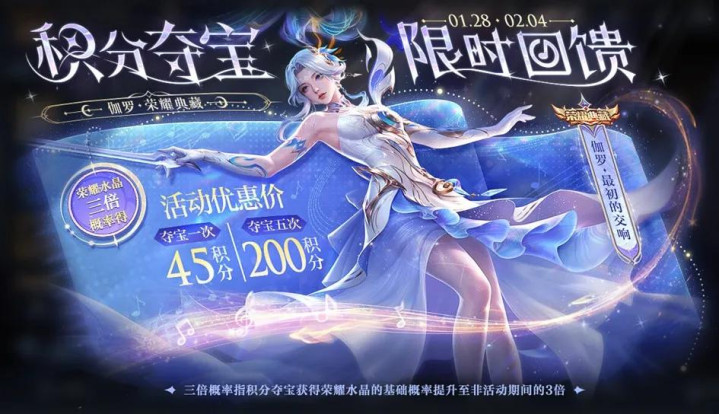 而且前两年的春节,都有着荣耀水晶三倍概率的活动,今年虽然还没透露,但等一等活动总归不会坏的,毕竟还有10天左右才到春节。